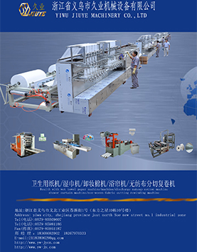 金華市久業(yè)智能科技有限公司專業(yè)制造無紡布機械,餐巾紙機械,濕巾機械設(shè)備,集機械設(shè)備的生產(chǎn)科研、銷售服務、后勤保障為一體。位于全球關(guān)注的浙江義烏工業(yè)園區(qū)內(nèi),距離義烏機場,義烏火車站僅10分鐘車程,交通便利。